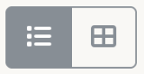 The resource listing pages have two display options: column or grid. The view selector is above to tools at the top of the page. The darker side of the selector shows the current view